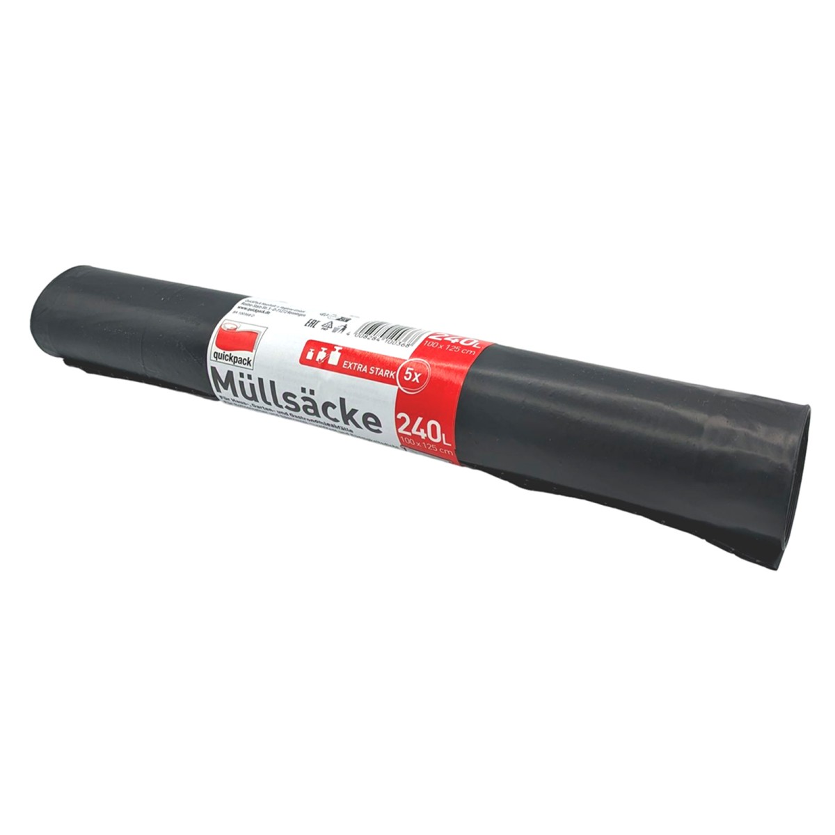 QuickPack 100368D - 5 Container-Müllsacke, schwarz, 240 Liter