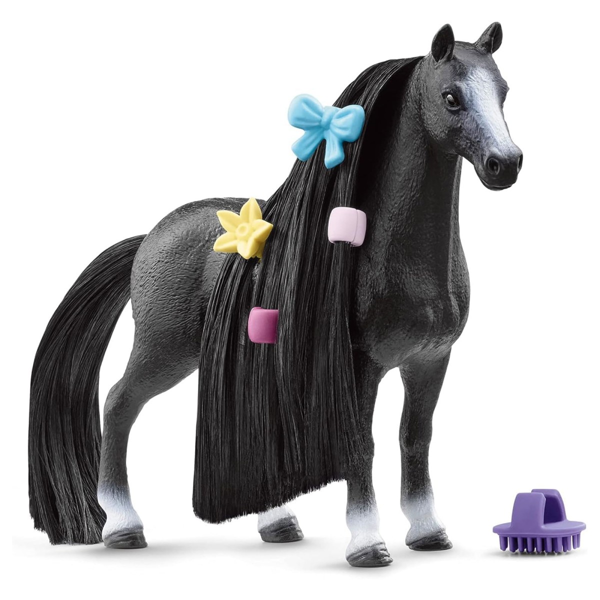 Diese wunderschöne Quarter Horse Stute begeistert mit besonders langer Mähne und Schweif, die liebevoll gebürstet, geflochten und dekoriert werden können. Dank der mitgelieferten Haarperlen, Blume und Kamm wird jedes Styling zum kreativen Erlebnis.