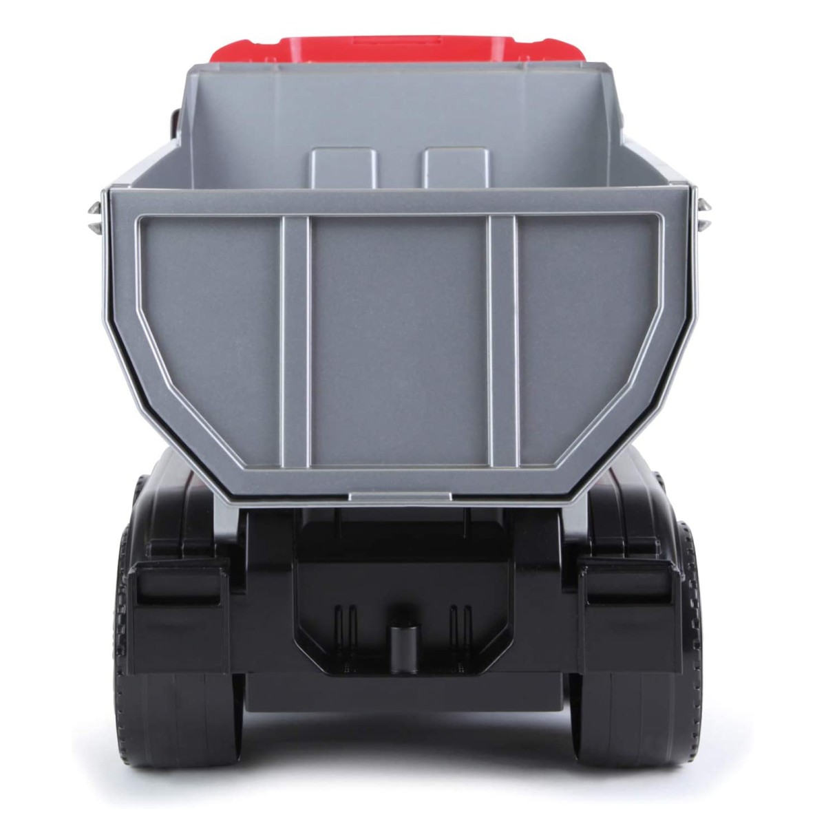 Das rot-schwarze Fahrzeug in modernem und detailliertem Design ist ausgestattet mit 5 mm verzinkten Stahlachsen und bietet tolle Spielfunktionen. – so zum Beispiel besitzt er eine verriegelbare flache Kippmulde. Maße ohne Verpackung: 45 x 19 x 22 cm.
