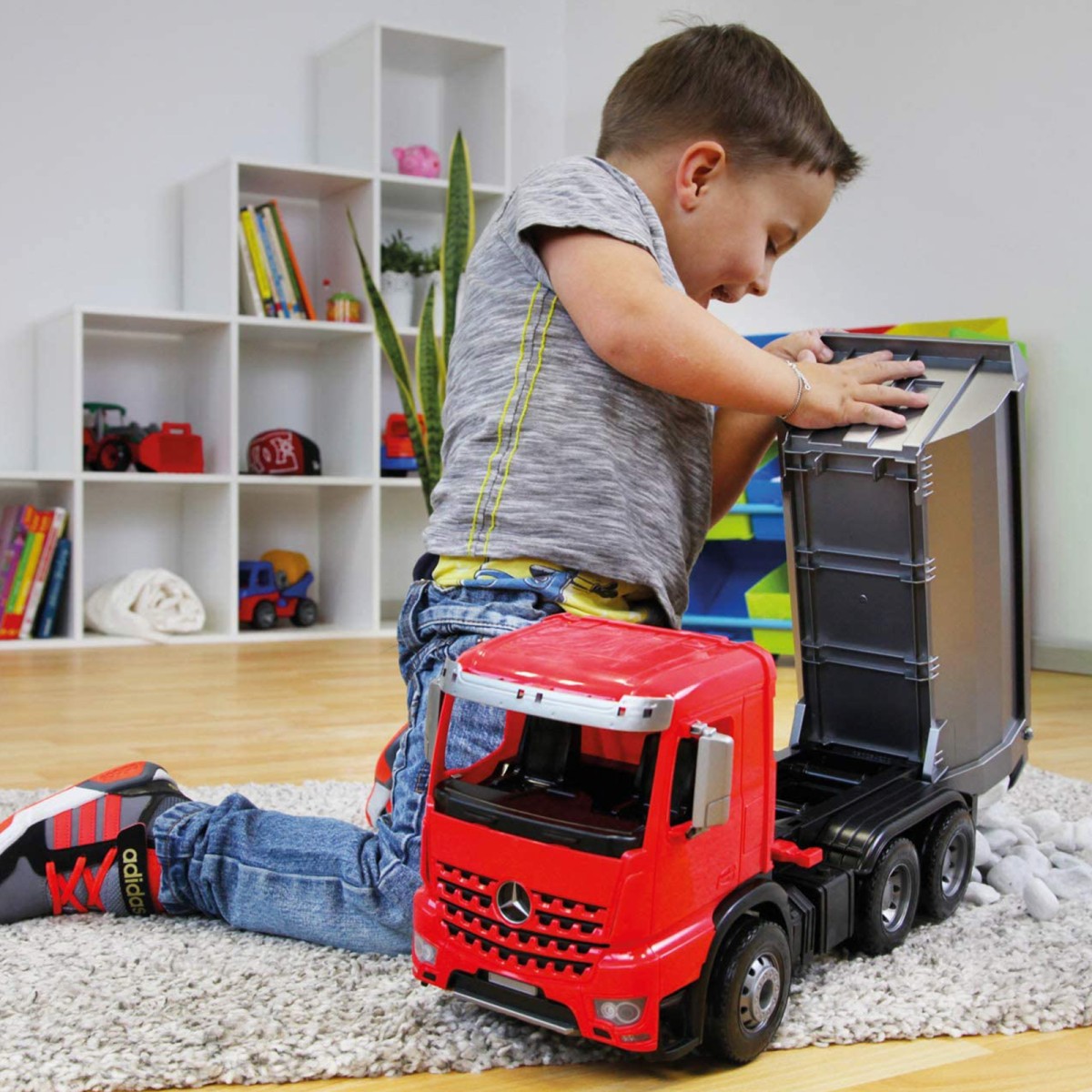 Der LENA® Mercedes Arocs ist eine realitätsnahe Nachbildung des Originalfahrzeugs. Das 45 cm lange Fahrzeug in robuster Ausführung ist zum Spielen für drinnen und draußen geeignet.