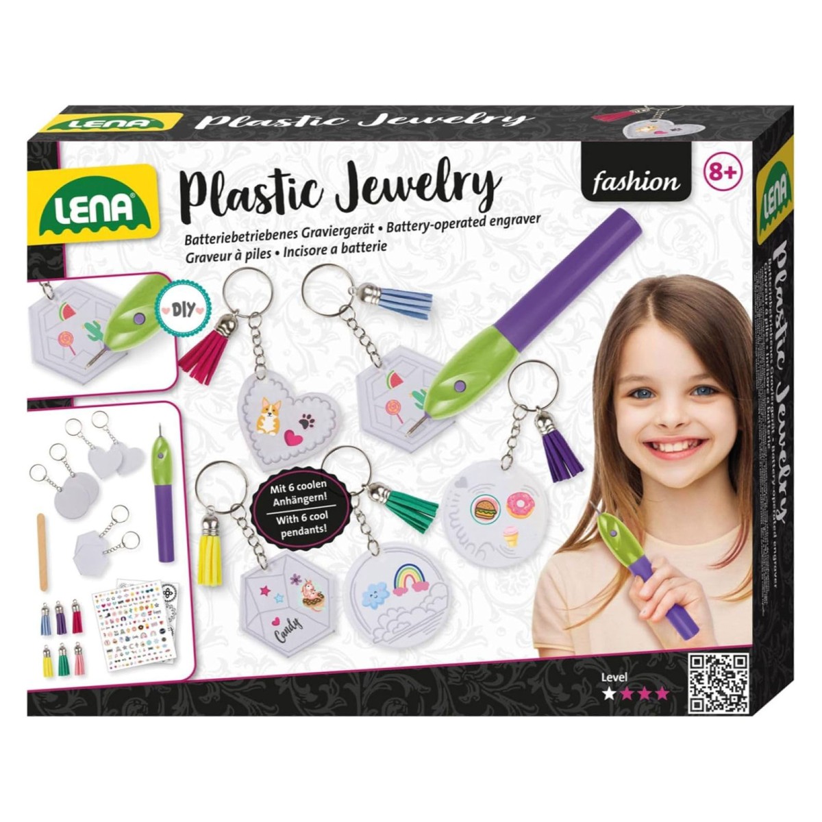 Mit dem Lena Fashion Plastic Jewelry Bastelset lassen sich einzigartige Schmuckstücke individuell gestalten. Dank des batteriebetriebenen Graviergeräts können kreative Muster, Buchstaben oder Symbole in Kunststoff-Anhänger eingraviert werden, um personalisierte Ketten, Armbänder oder Schlüsselanhänger zu kreieren.