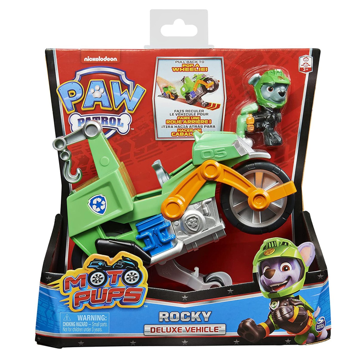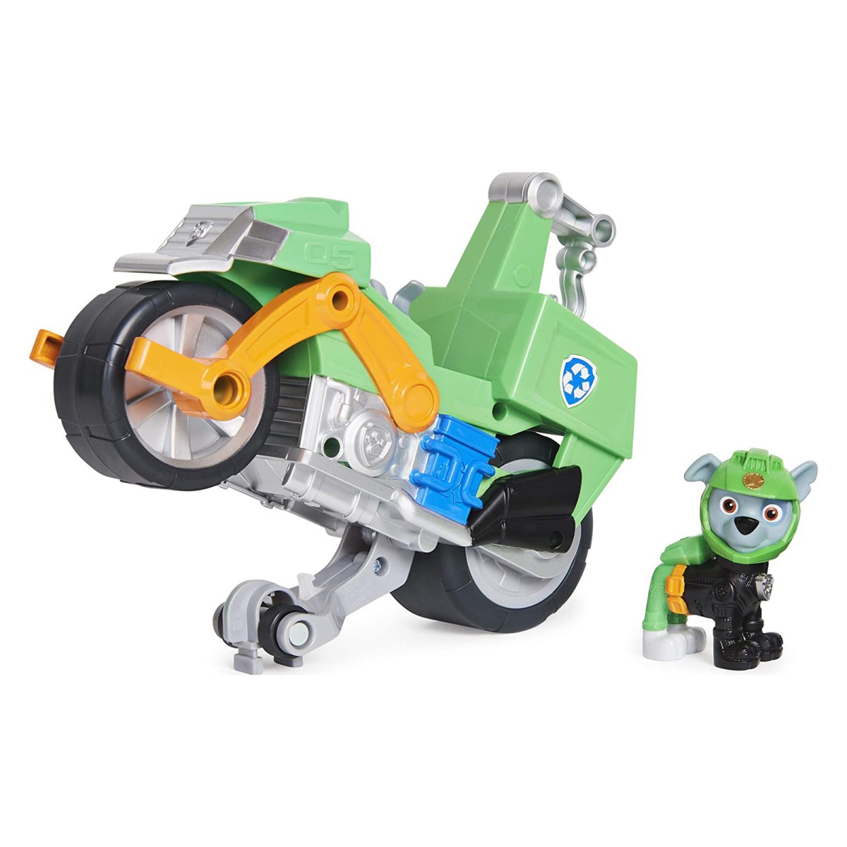 Der wohl coolste Abfallentsorger aus ganz Adventure Bay. Hier kommt Rocky mit seinem Entsorgungsmotorrad mit eingebauter Wheelie-Funktion. Dafür einfach das Fahrzeug nach hinten ziehen und loslassen. Schon kann das Spektakel beginnen.