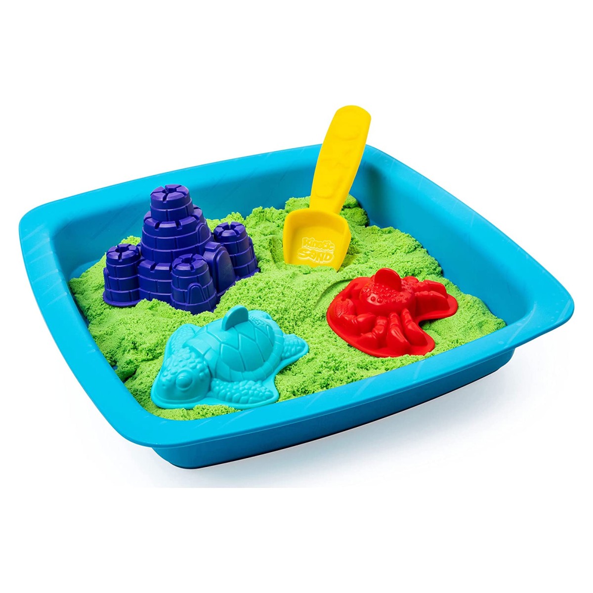 Das Kinetic Sand Sand Box Set bietet alles, was Vorschulkinder an Schlechtwettertagen brauchen, um das Sandspiel ins Kinderzimmer zu verlegen. Die kleine Wanne bietet Platz zum Bauen und spielen und kann auf dem Boden oder einem Spieltisch platziert werden. Das Set ist wahlweise mit grünem, blauem oder lila Kinetic Sand erhältlich. Die Förmchen und das Schäufelchen sind ideal für Vorschulkinderhände.