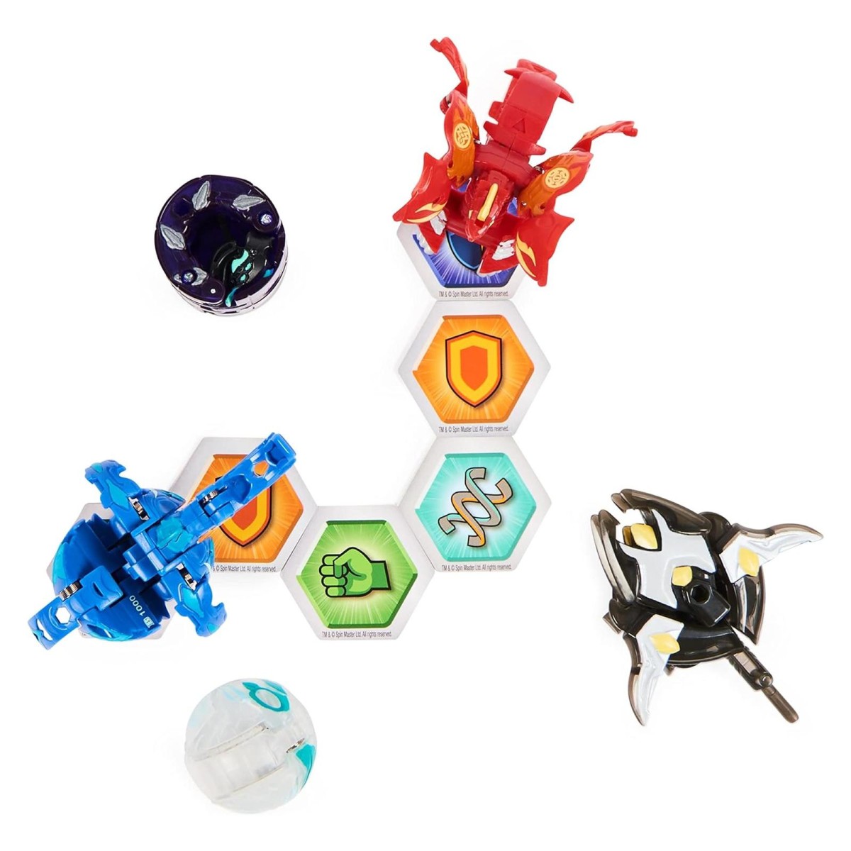 1 Nova Bakugan, 1 Ultra Bakugan, 1 Baku-Gear, 1 Geogan, 1 Bakugan, 6 BakuCores, 7 Karten, Anleitung