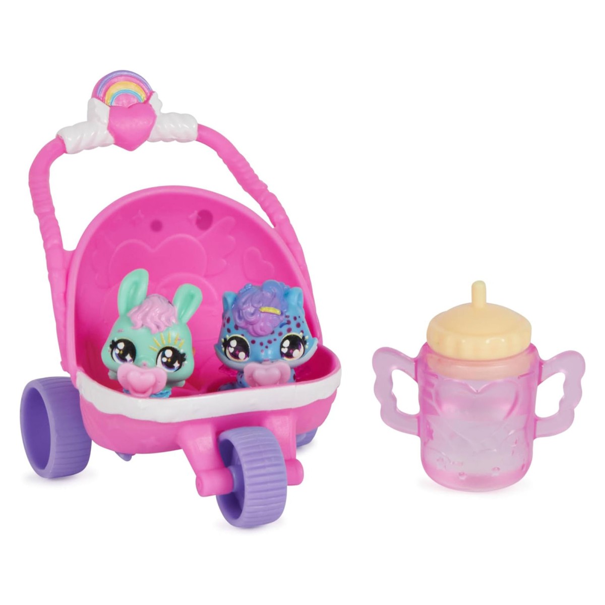 - Mit den beiden Hatchimals Tierchen, dem Doppelbuggy, zwei Schnullern und dem Fläschchen können sich Kinder ab 3 Jahren fantasievolle Geschichten ausdenken und sich um ihre kleinen Lieblinge kümmern