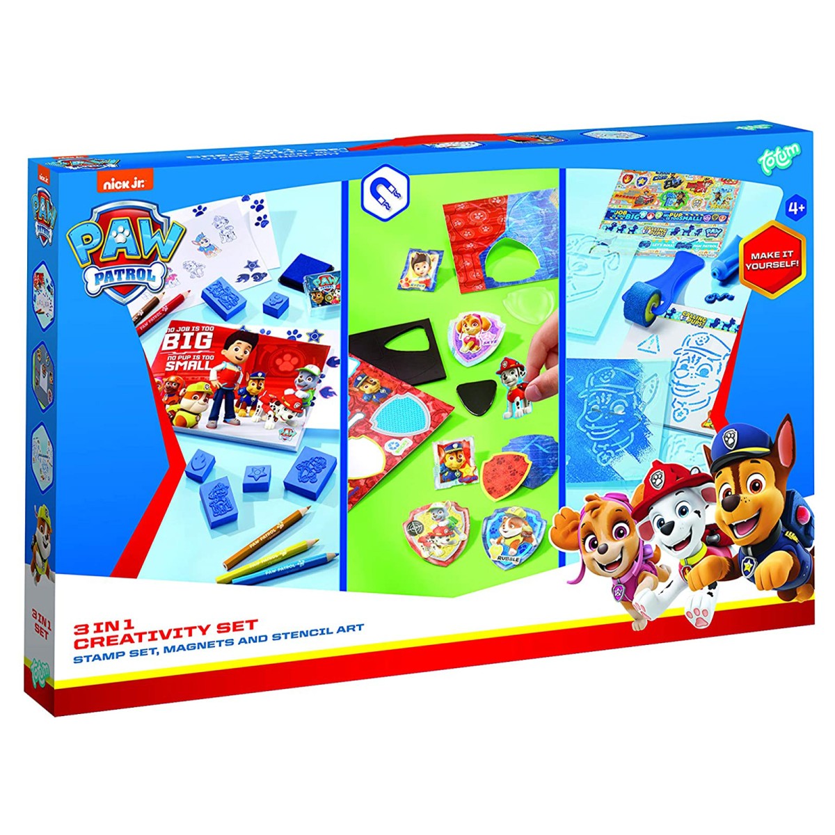- Ein Must-have für alle Paw Patrol und Bastel-Fans – das tolle Totum Paw Patrol 3 in 1 Kreativset mit Stempel-Set, DIY-Magnet-Set & Malschablonen-Set!